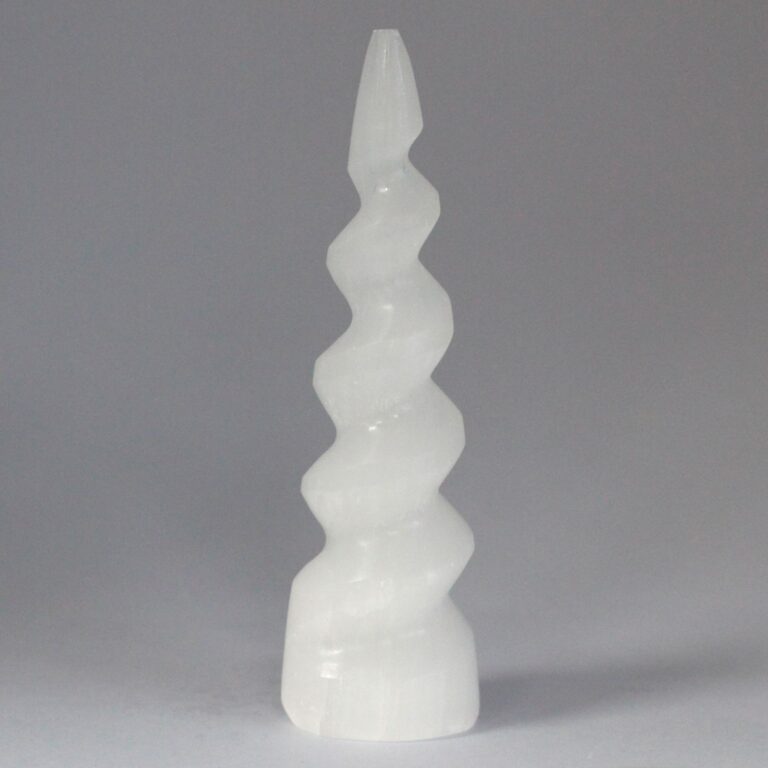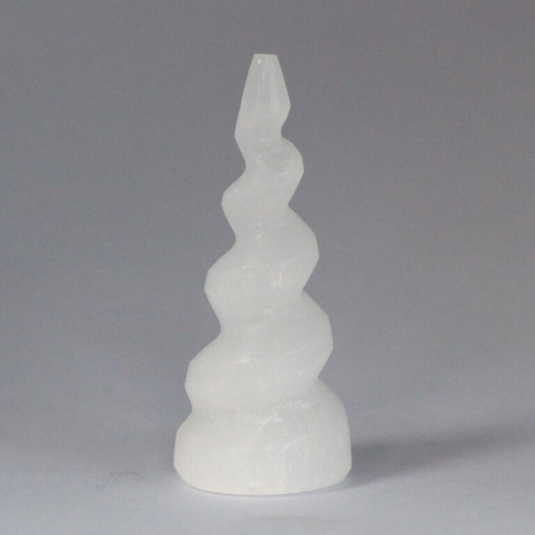 Torre de Cuerno de Unicornio Espiral de Selenita – 10 cm