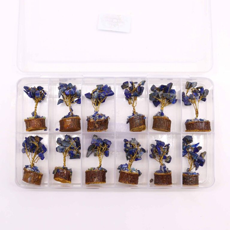 Mini árbol de piedras preciosas sobre base de madera – Sodalita (15 piedras)