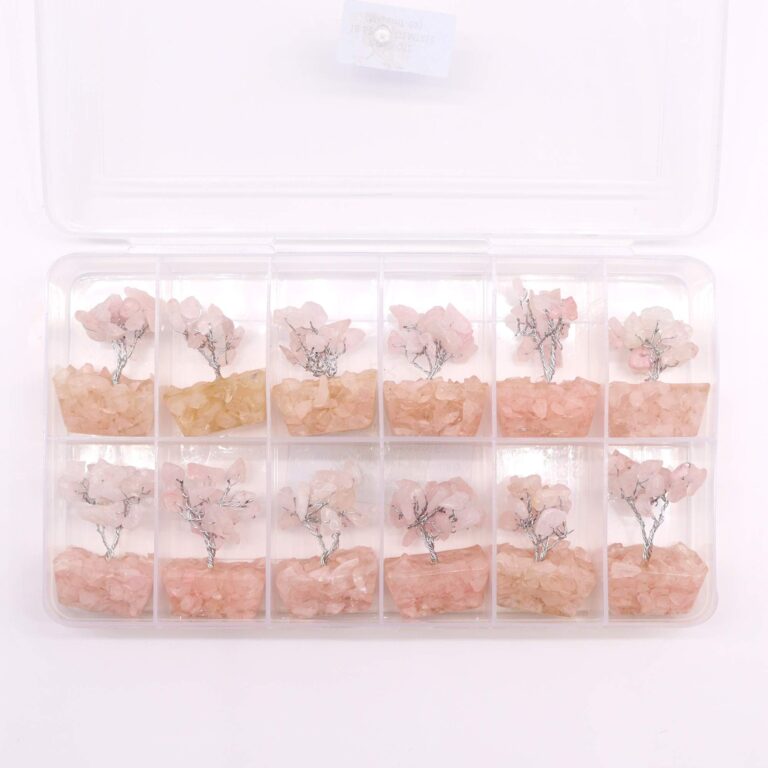 Mini árbol de piedras preciosas sobre base de orgonita – Cuarzo rosa (15 piedras)