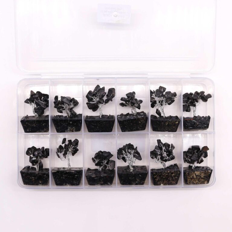 Mini árbol de piedras preciosas sobre base de orgonita – Ágata negra (15 piedras)