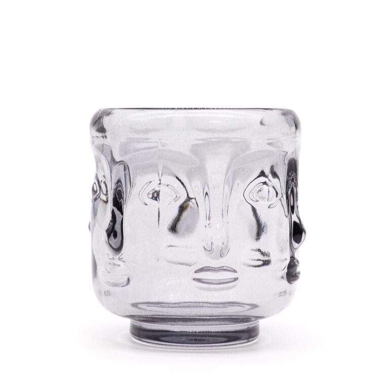 Tarro de vela con caras de Buda – Gris medianoche
