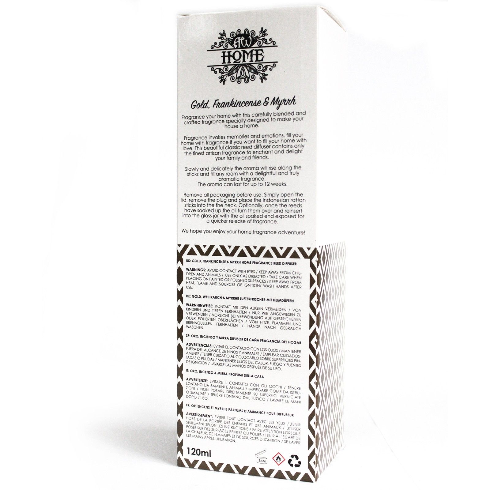 Dulce pero terroso, esta majestuosa mezcla de oro, incienso y aroma de mirra hará que sus clientes disfruten de su aroma fragante. El aroma a pino y a limón del incienso combinado con el aroma terroso de Mirra crea un sutil aroma sutil que perfumará las casas de sus clientes por hasta 12 semanas.