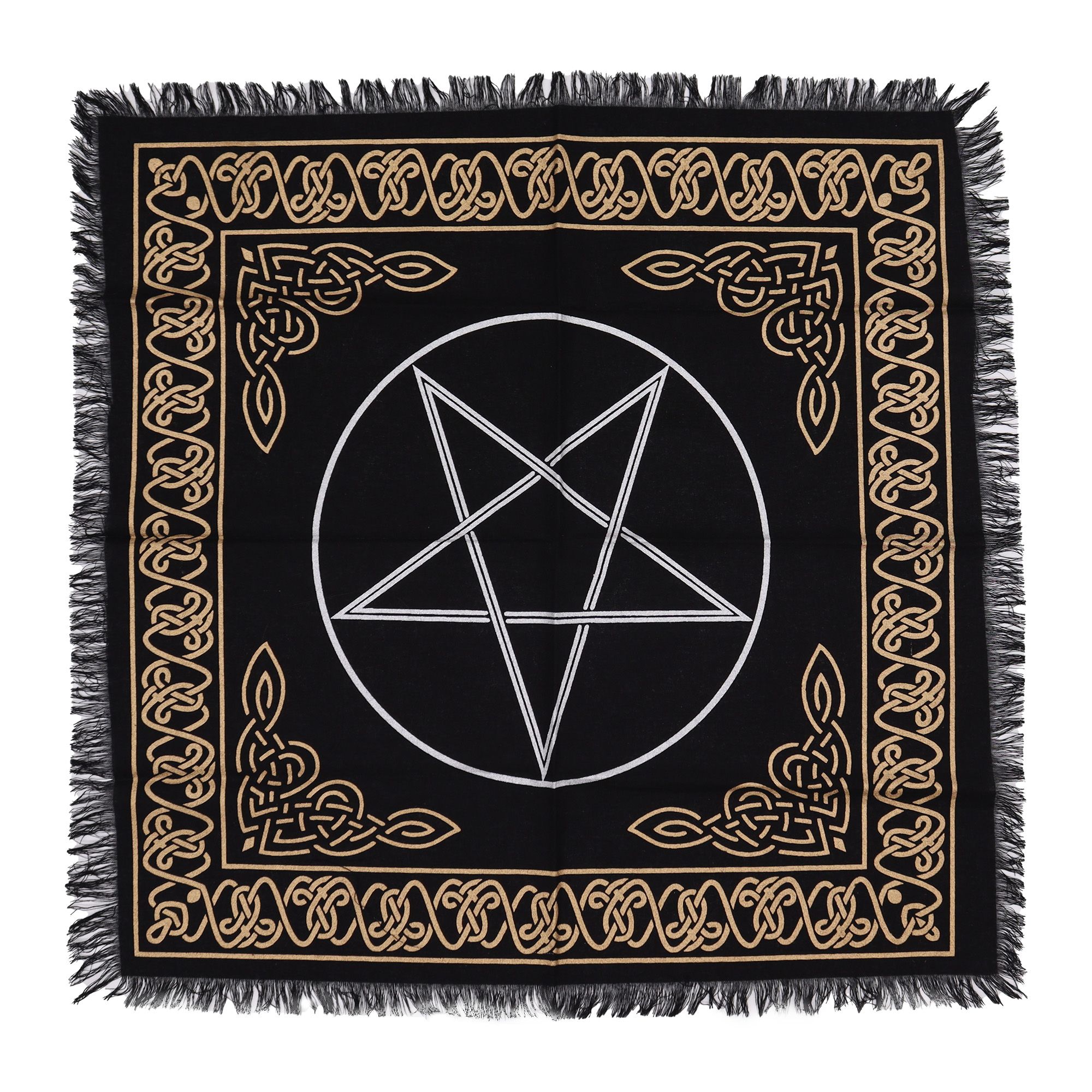 Aporta misticismo y belleza a los espacios espirituales de tus clientes con nuestro mantel de altar esotérico con diseño de Pentágono.