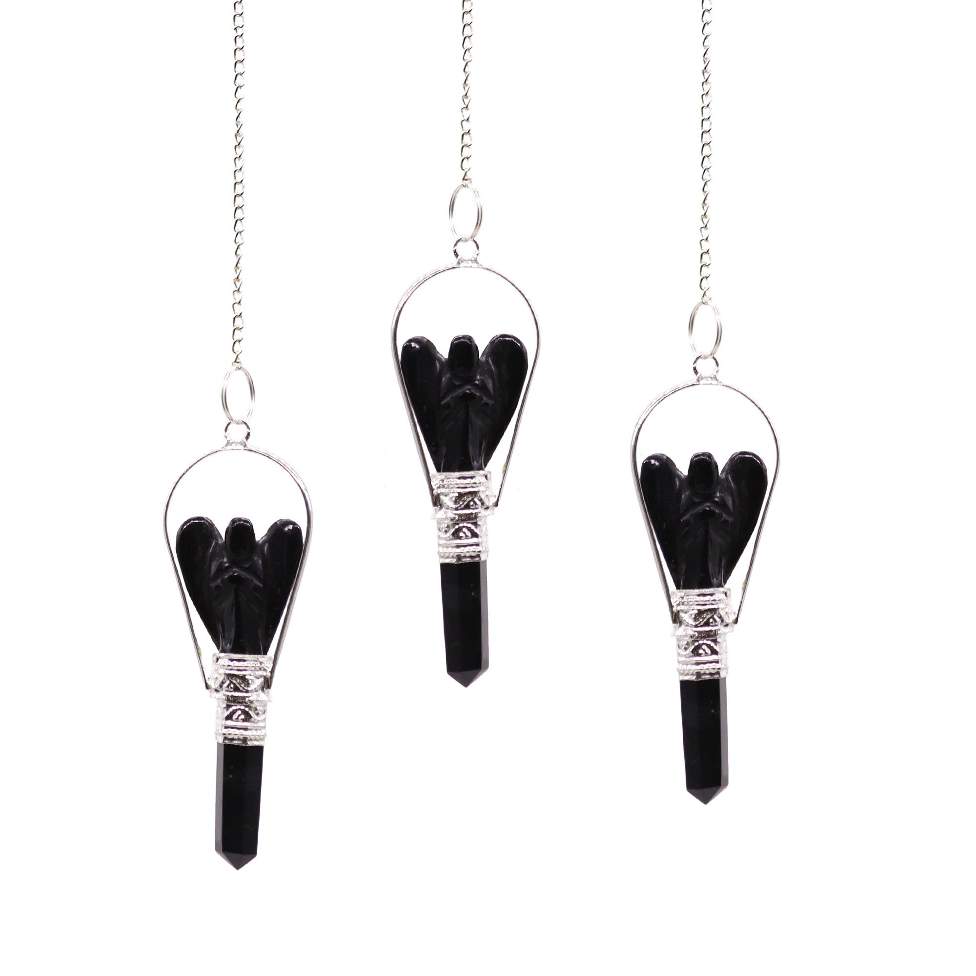 Péndulo de ángel con anillo de ágata negra